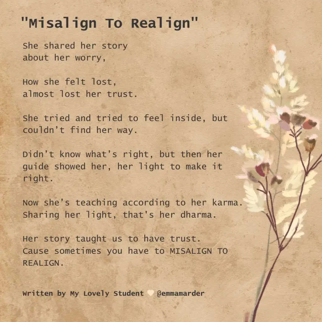Misalign to Realign is not just a book, it’s a mirror of my soul’s journey. A path shaped by missteps, silence, realignments, and deep, sacred inner work. What Emma wrote here brought tears to my eyes, because she captured not only my story but the essence of this book. It’s about finding alignment not just in postures, but in purpose. Not just on the mat, but in life. If you’re walking through your own misalignments, this book might just help you realign in a way you never expected.