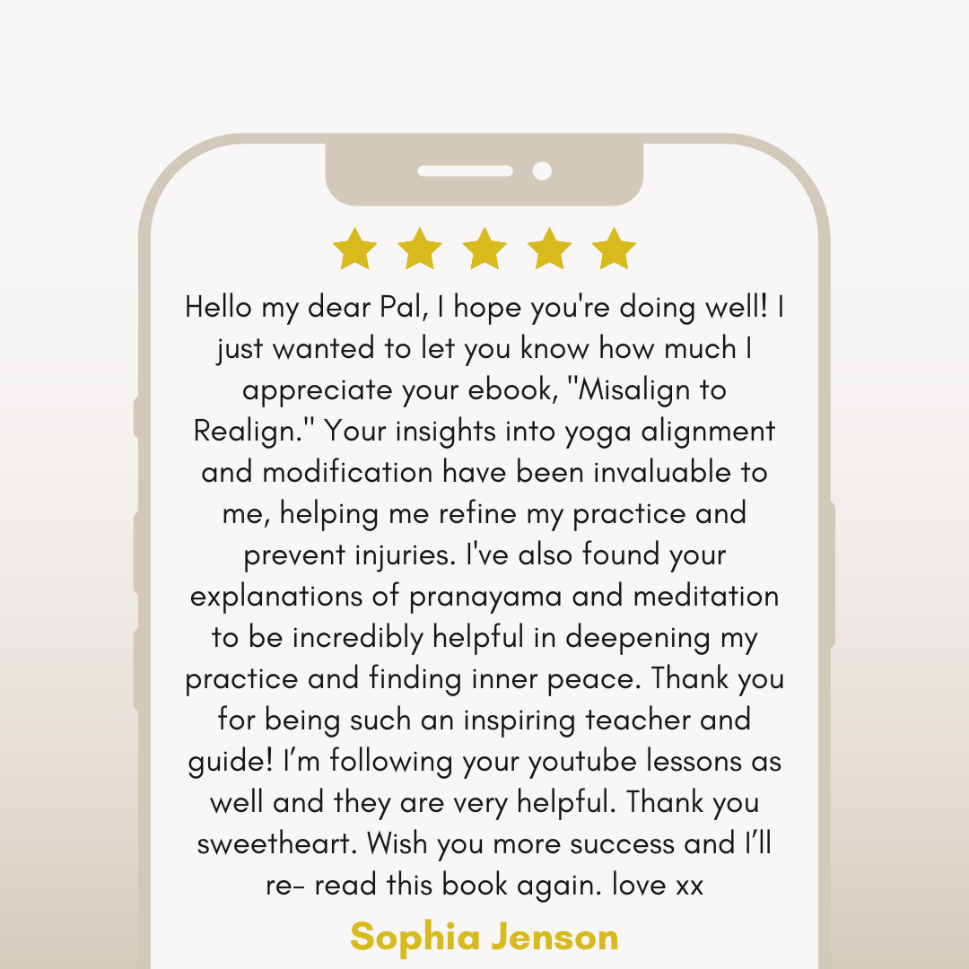 It’s not just a yoga alignment book. It’s a holistic journey into alignment of body, breath, and being. From posture tips to philosophy, breathwork to self-awareness—it weaves together ancient wisdom with modern practice to help you reconnect with yourself on and off the mat.